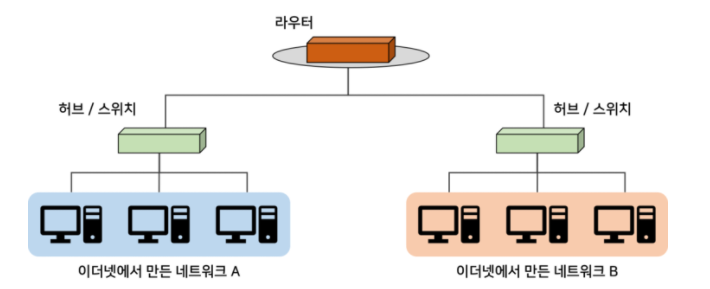 서브넷에는 라우터와 허브라는 중계 장치를 가지고 있다. 라우터와 허브가 서로 역할을 분담하여 패킷을 중계한다.