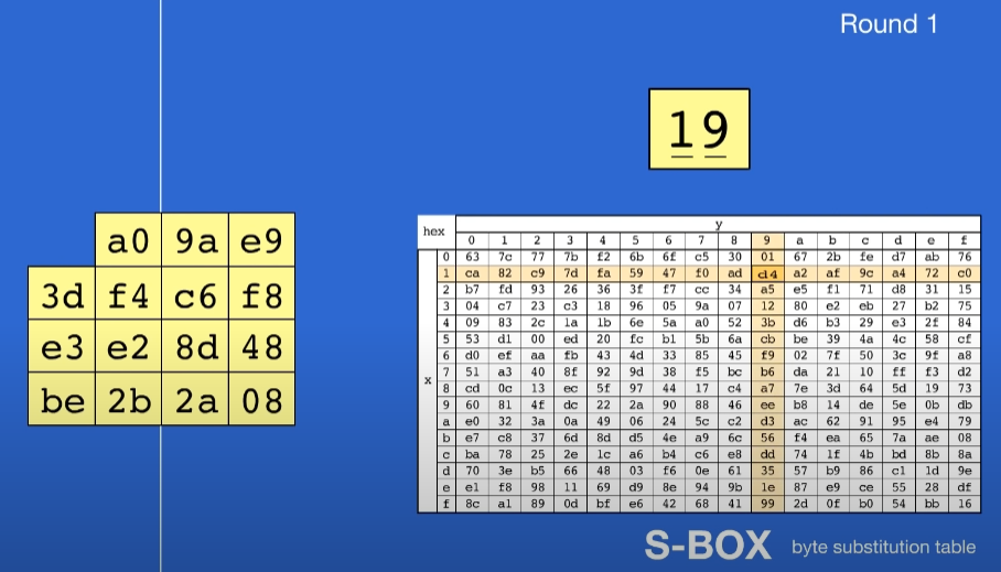 유튜브의 'AES Rijndael Cipher explained as a Flash animation' 설명을 보고 이해했습니다.