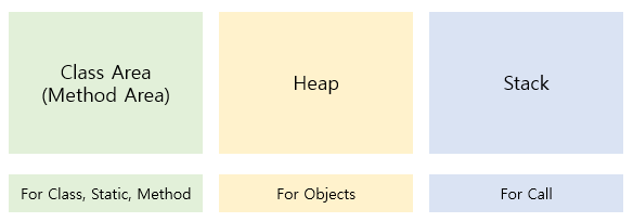 - Heap : 객체를 new 연산으로 생성하게 되면 각 객체별로 저장된다.