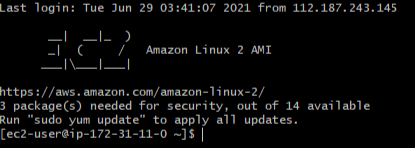 위와 같은 Amazon Linux 화면이 나온다면 리눅스 인스턴스에 접속 성공한것입니다!
