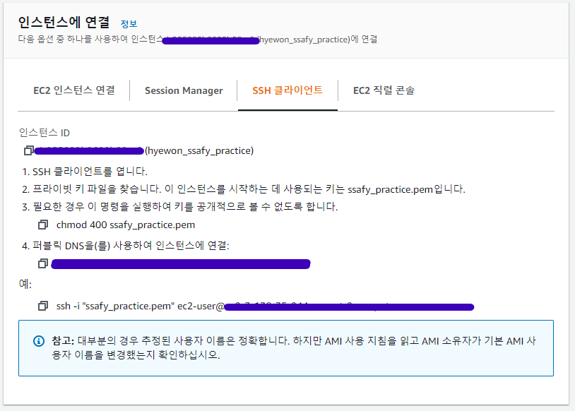 key를 읽기 권한으로만 설정하여 인스턴스에 연결하면 됩니다. 계속해서 권한 에러가 났는데, chmod 400으로 설정했음에도 계속 이런 에러가 발생하였습니다. 문제는 key가 아닌 dns를 잘못입력하여 생긴것입니다. AWS에 알려주는 명령어를 사용하면 됩니다!