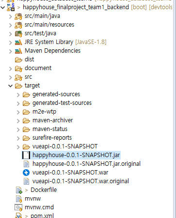 - 다음과 같이 target폴더 아래에 jar 파일이 생성되어야 성공입니다.