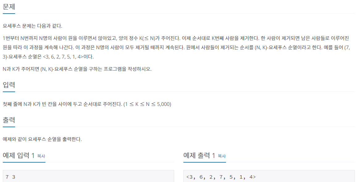 N명이 모두 제거될때까지 계속 순열을 돌아가면서 K번째 사람을 제거하는 문제입니다.