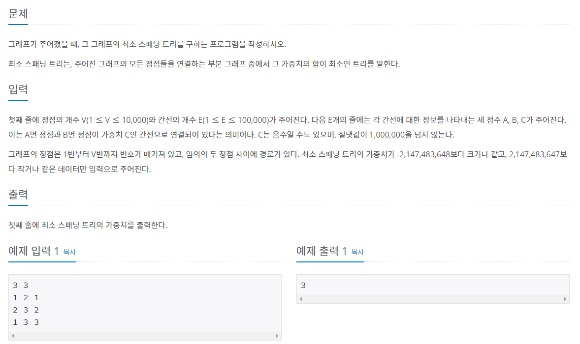 백준 최소 스패닝 트리 문제를 풀면서 크루스칼 알고리즘을 구현하겠습니다!