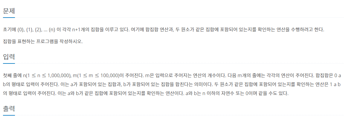 - 백준 유니온 파인드 기본 문제를 통해 구현했습니다! (주석을 통해 설명했습니다!)