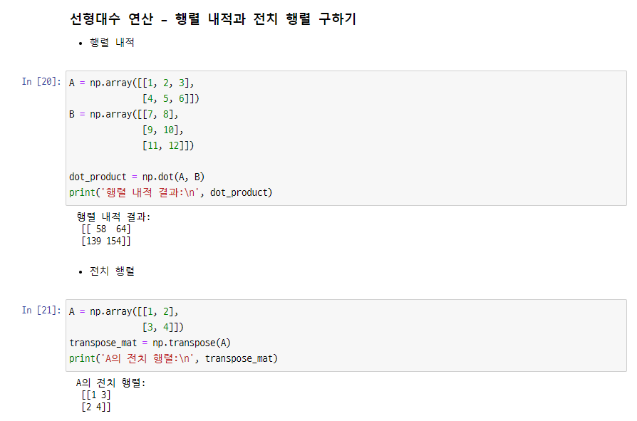 np.dot(A,B) : 행렬 내적