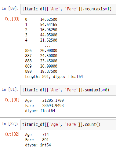 - axis = 1 은 모든 행에 대해서 집계 함수를 수행하기때문에 length가 데이터의 row길이 임을 확인할 수 있습니다.